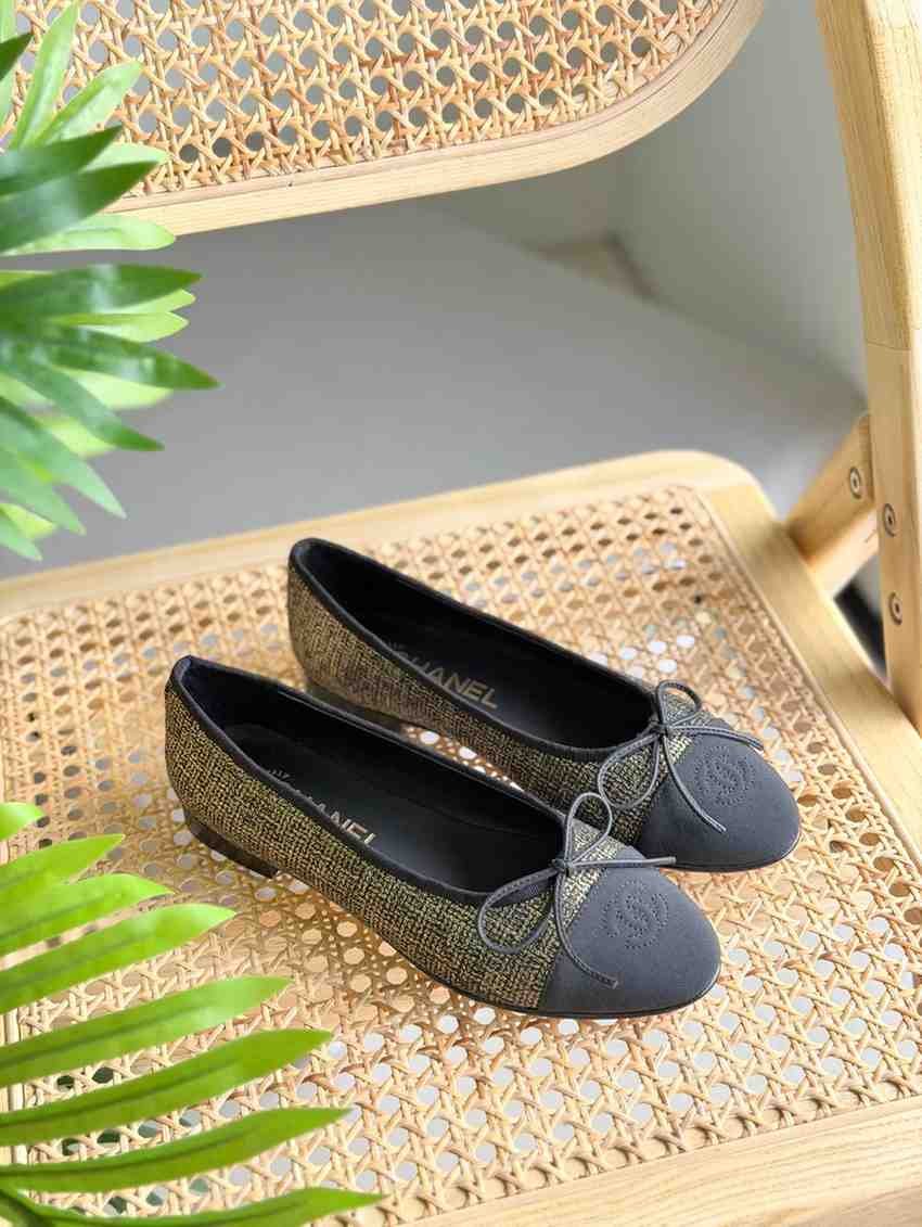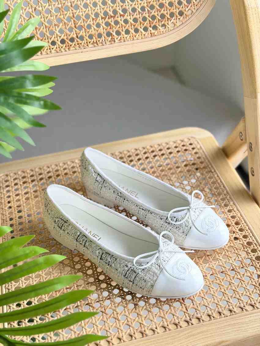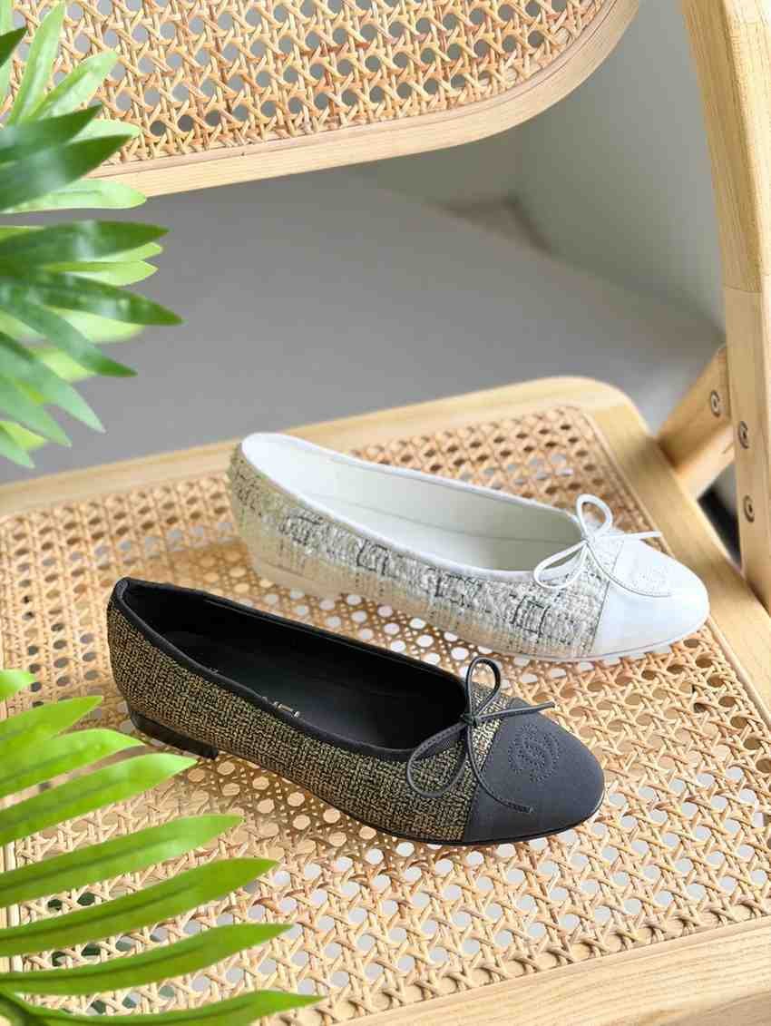 Chanel Tweed Grosgrain Cap Toe Ballerina Flats